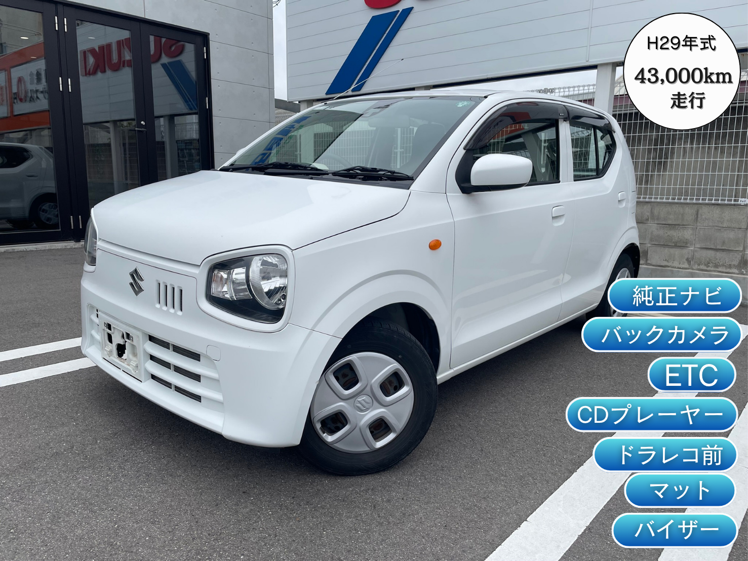 即納車のお問い合わせ(鳴門店) お問い合わせをする在庫車両 スズキ/中古車 H29年式【アルト”L”】純正ナビ・バックカメラ・ETC・CDプレーヤー・ドラレコ前・マット・バイザー付! 本体価格 64.8万円 年式 平成29年式/ 走行距離 43,000km/ 車検 令和8年6月/ 修理歴 無/ 排気量 660 ※が付いている項目は必ずご入力ください お問い合わせ内容※ 見積依頼 来店希望 その他 ※見積りは簡易見積りとなります。正確な見積りはご来店いただいてからとなりますのでご了承ください。 お問い合わせ詳細 ※「来店希望」「その他」のお問い合わせは内容入力必須です。 ※「来店希望」の場合は、来店希望日時をご記入ください。 ※「来店希望」はご希望の日時にお応えできない場合がございます。予めご了承ください。 氏名※ フリガナ※ 電話番号※ メールアドレス※ 当社のプライバシーポリシーはこちら