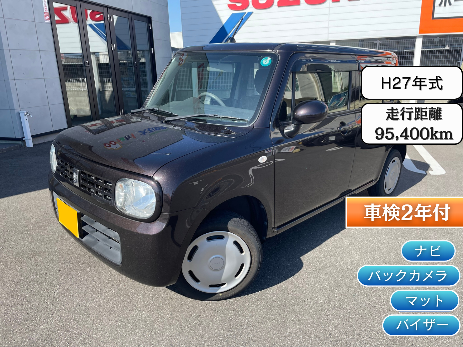 即納車のお問い合わせ(鳴門店) お問い合わせをする在庫車両 スズキ/【ラパン”G”】 本体価格 49.8万円 年式 平成27年式/ 走行距離 95,400km/ 車検 / 修理歴 有/ 排気量 660 ※が付いている項目は必ずご入力ください お問い合わせ内容※ 見積依頼 来店希望 その他 ※見積りは簡易見積りとなります。正確な見積りはご来店いただいてからとなりますのでご了承ください。 お問い合わせ詳細 ※「来店希望」「その他」のお問い合わせは内容入力必須です。 ※「来店希望」の場合は、来店希望日時をご記入ください。 ※「来店希望」はご希望の日時にお応えできない場合がございます。予めご了承ください。 氏名※ フリガナ※ 電話番号※ メールアドレス※ 当社のプライバシーポリシーはこちら