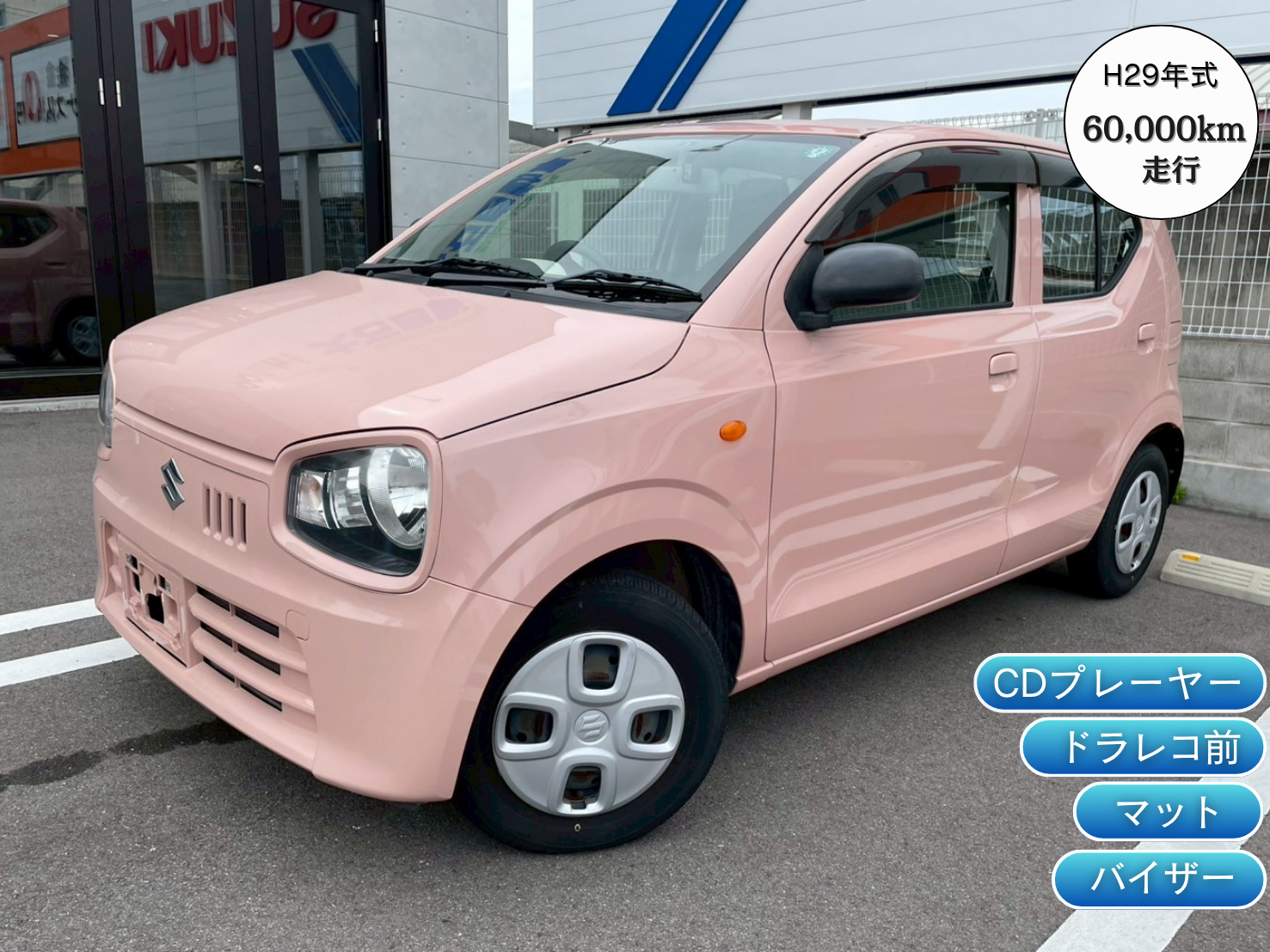 即納車のお問い合わせ お問い合わせをする在庫車両 スズキ/中古車 H29年式【アルト”L”】CDプレーヤー・ドラレコ前・マット・バイザー付! 本体価格 39.8万円 年式 平成29年式/ 走行距離 60,000km/ 車検 令和9年7月/ 修理歴 無/ 排気量 660 ※が付いている項目は必ずご入力ください お問い合わせ内容※ 見積依頼 来店希望 その他 ※見積りは簡易見積りとなります。正確な見積りはご来店いただいてからとなりますのでご了承ください。 お問い合わせ詳細 ※「来店希望」「その他」のお問い合わせは内容入力必須です。 ※「来店希望」の場合は、来店希望日時をご記入ください。 ※「来店希望」はご希望の日時にお応えできない場合がございます。予めご了承ください。 氏名※ フリガナ※ 電話番号※ メールアドレス※ 当社のプライバシーポリシーはこちら