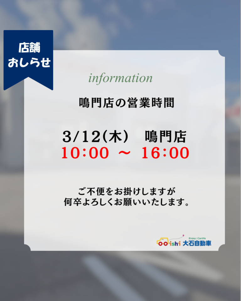 3/12(木)鳴門店のみ【 10:00〜16:00 】