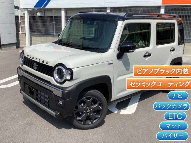 スズキ未使用車【ハスラー”タフワイルド”】ピアノブラック内装・セラミックコーティング・ナビ・ETC・バックカメラ・マット・バイザー付!